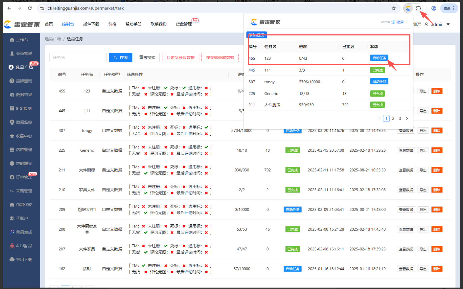 填好需求点-点击确定-然后筛选出数据,点击扩展程序里会出来如下图↓↓↓